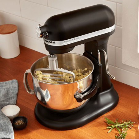 El diseño del batidor funciona perfectamente con el cuenco para romper la mantequilla fría en trozos pequeños, creando una textura consistente y una distribución uniforme, minimizando el riesgo de sobremezcla