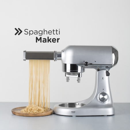 Todo el sabor de Italia ha llegado a la puerta de tu casa. Llegó Pasta Maker, accesorios únicos de nuestra espectacular batidora Hook Mixer, que te transportarán a los mejores restoranes de pastas en Nápoles. Lo mejor de todo es que son tres adaptadores que te permitirán dejar tus pastas y masas del grosor y tipo que tú quieras. Disfruta en gloria y majestad a Pasta Maker, Spaguetti Maker y Fetuccini Maker, y no te pierdas un viaje desde tu casa a la mía Italia. Pasta Maker cuenta con 1 año de garantía. Estos accesorios no se venden junto con Hook Mixer.