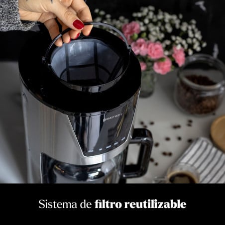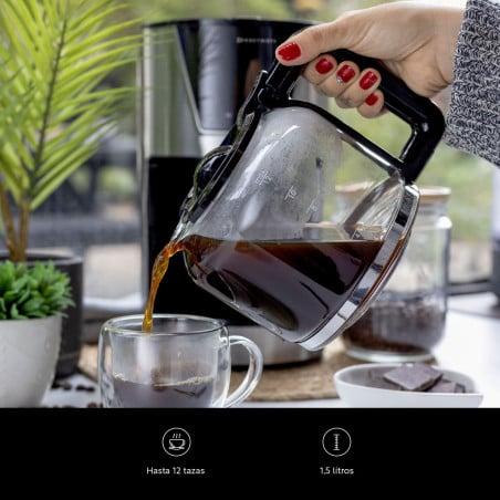 Comienza tus mañanas con el aroma y sabor del café recién hecho gracias a la Cafetera de Filtro Sicilia Coffee de EasyWays. Con una capacidad de 1,5 litros (hasta 12 tazas), esta cafetera es perfecta para hogares, oficinas o para quienes no pueden pasar el día sin una buena taza de café. Equipada con un elegante jarro de vidrio templado, ofrece resistencia y estilo en cada preparación. Su sistema de programación automática te permite dejarla lista desde la noche anterior, para que el café comience a prepararse justo a la hora que necesitas. El panel digital con reloj incorporado hace que su uso sea intuitivo y cómodo, mientras que la función de mantención de temperatura por hasta 2 horas asegura que tu café esté siempre listo para servir. Además, incluye un filtro lavable y removible, que facilita la limpieza y evita el uso de filtros desechables, y una cuchara medidora para lograr la dosis perfecta en cada preparación. Con 800 W de potencia, esta cafetera combina eficiencia, capacidad y funcionalidad en un diseño moderno y práctico.