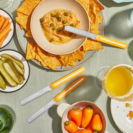 Tiene una funda de cartón donde puedes guardarlo. Aptas para el lavavajillas. Se recomienda secar a mano después de cada lavado. Tamaño: 215 mm (hoja de 100 mm y mango de 115 mm).
