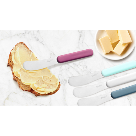 Cuchillo para mantequilla fabricado en acero inoxidable y mango de plástico. Apto para lavavajillas. Disponible en 4 colores.(color se envia según disponibilidad)