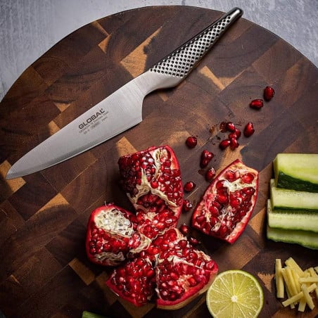 Los cuchillos Global se caracterizan por su peso ligero, fabricados en Japón usando un proceso inspirado en la elaboración de espadas de los antiguos Samurái. Famosos por su perfecto equilibrio, precisión, rendimiento y construcción. Global es un cuchillo versátil que se fabrica bajo estándares de cocineros profesionales.