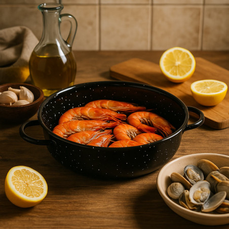 Te presentamos la nueva línea de Fuentes Esmaltadas Negras de Garcima, marca española de alta calidad. Fuentes de fierro esmaltado con 2 asas. Aptas para Cocina a gas, inducción, vitrocerámica, eléctrica y horno.
