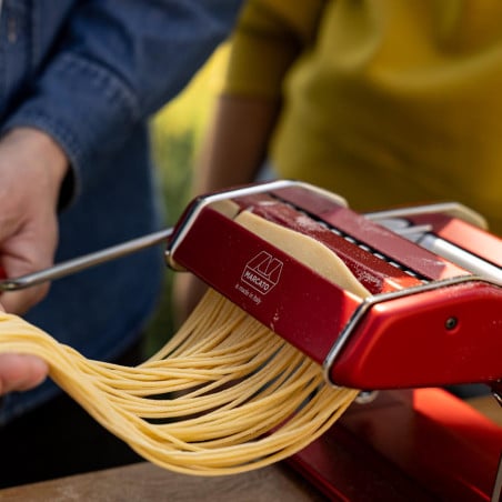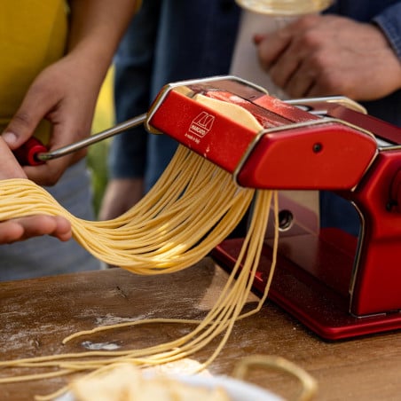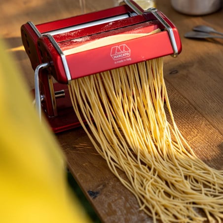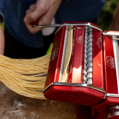 Marcato Atlas Plus es la máquina para pastas clásica, ahora en una versión renovada. Una herramienta culinaria que combina la tradición italiana con la versatilidad y eficiencia que toda cocina necesita.¡Más resultados sin cambiar accesorios! Este modelo incorpora un rodillo especial que te permite preparar spaghetti y tagliolini ajustando únicamente el grosor del cortador, logrando distintos tipos de pasta con un solo accesorio.Con la máquina para pastas Marcato Atlas Plus no pierdes funciones, ganas versatilidad. Un infaltable para los amantes de la pasta fresca y para disfrutar momentos únicos en torno a la mesa.