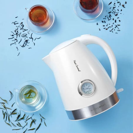 Práctico hervidor con termómetro incorporado, capaz de calentar 1.7 litros de agua hasta el punto de ebullición en menos de 6 minutos.