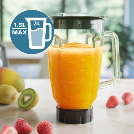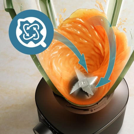 La tecnología ProBlend garantiza un increíble reulstado cada vez que se utilice la licuadora. Con sus cuchillas puede triturar fruta, verduras e incluso hielo. La licuadora sólo funcionará si está perfectamente bloqueada, lo que proporciona mayor seguridad y alarga la vida util de su equipo. El jarro de cristal no se mancha y no queda impregnado de olores, lo que garantiza un buen sabor en sus preparaciones Debido a sus 12 opciones de velocidad, tendrá un control total de sus recetas, desde jugos, batidos hasta cremosas salsas y sopas. Con un solo giro, puedes limpiar las cuchillas y la jarra, haciendo que el mantenimiento sea rapido y sin complicaciones
