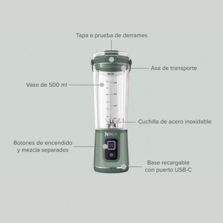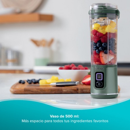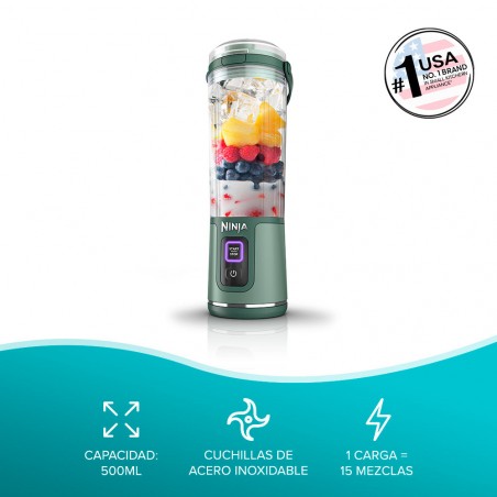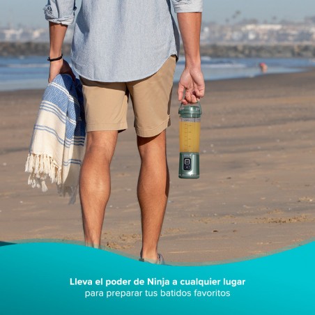 La licuadora portátil Ninja Blast™ brinda potencia de licuado Ninja de alta velocidad mientras viaja con un diseño portátil e inalámbrico. El recipiente es perfecto para batidos, batidos de proteínas y bebidas congeladas.