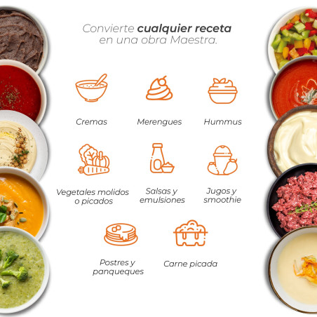 Trituradora para sopas, cremas y purés de manera homogénea.