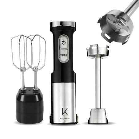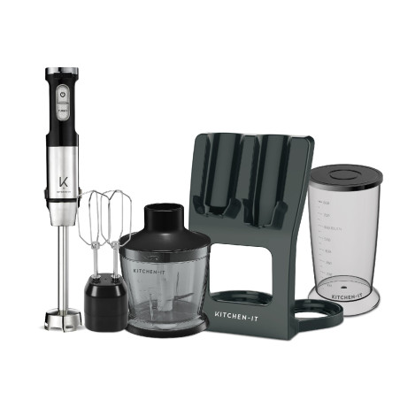 Con la Minipimer Pro 1000W 5 en 1 de Kitchen-it, transformar tu experiencia en la cocina nunca fue tan fácil. Este versátil dispositivo combina potencia profesional, diseño inteligente y una funcionalidad 5 en 1, ideal para quienes buscan practicidad sin renunciar a resultados de alta calidad.
