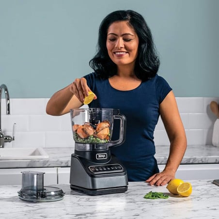 Procesador de Alimentos Ninja Professional prepara comidas con total precisión. Crea todos los platos que desees, desde hamburguesas, ensaladas, salsas, condimentos, masas y postres.