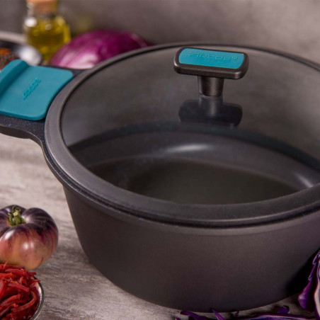 La superficie antiadherente libre de PFOA esta indicada para el contacto alimentario, es facil de limpiar y tiene una excelente resistencia a los aranazos, el calor se distribuye de forma uniforme sea cual sea la fuente de calor.