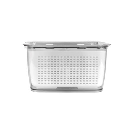 ¡Únete a lo último en organización para tu refrigerador! Están diseñadas para mantener frescas tus frutas y verduras por más tiempo. Gracias a su tapa de cierre hermético con ventilación integrada, puedes regular el flujo de aire que entra y sale, controlando la humedad y ayudando a prevenir el deterioro. Todos los contenedores incluyen divisiones plegables ajustables para mantener tus alimentos ordenados y separados. Además, la caja cuenta con una cesta interior que puedes usar como colador para lavar tus frutas/verduras y luego del lavado, lo puedes llevar directamente al refrigerador. ¡Resisten a las manchas y olores de los alimentos! Características: • Cierre Hermético • Apilables • Tapa con doble ventilación • Incluye rejilla de división • Material: PET + PP • Libre de BPA • Medidas M: 11,5 x 13,5 x 20 cm (2,2 Lt)