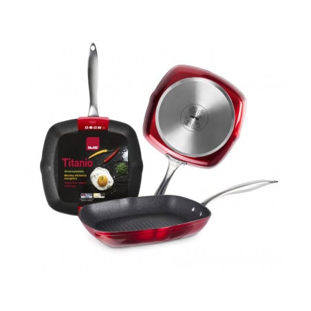 Grill Aluminio Forjado 28x28cm Red Rock Ibili. Cuenta con 3 capas de antiadherente. Apto para inducción, cocina eléctrica y a gas.