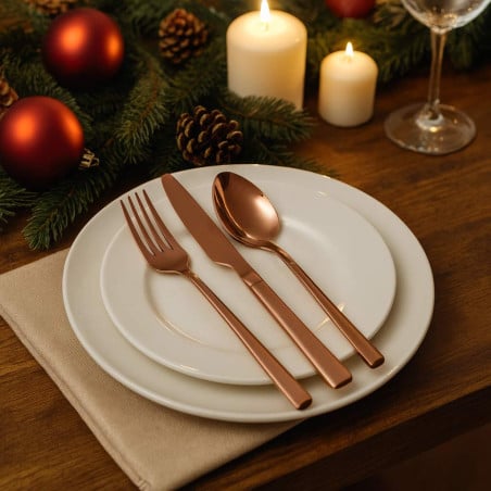 Nueva Colección de Lugano, te presentamos el Set Cubertería 24 Piezas Goldrose Metal Lugano. Contenido en una elegante caja especial para regalar.