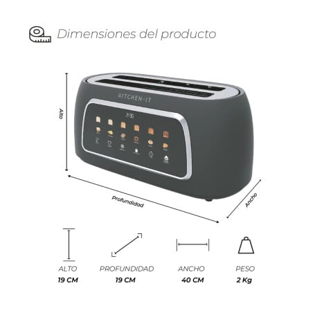 Despierta cada mañana con el dorado perfecto gracias al Smart Toast Digital de Kitchen-It. Con capacidad para 4 panes, pantalla táctil digital, sistema 100% automático sin palancas, 6 niveles de tostado y funciones inteligentes para distintos tipos de pan y repostería, este tostador convierte tus desayunos en una experiencia rápida, crocante y personalizada. Innovación, diseño y sabor con solo un toque.